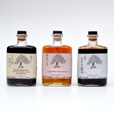 Try delicious Haku Smoked Shoyu, Haku Sakura Cherry Blossom Shoyu, and Haku Mizunara Whisky Barrel Aged Shoyu. Made in Kyoto, Japan.